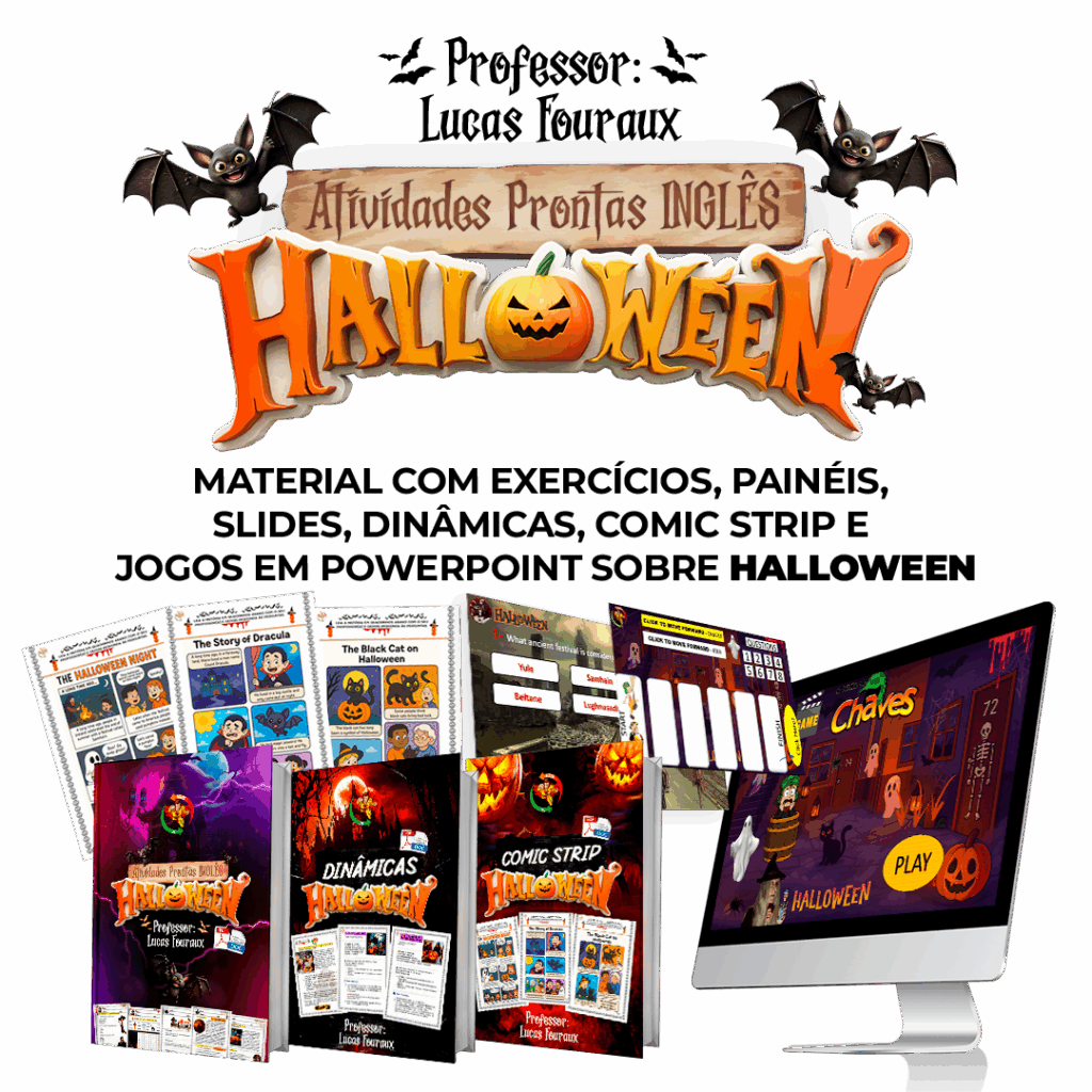 Pacote Completo com Exercícios, Slides e Jogos em Powerpoint sobre Halloween.